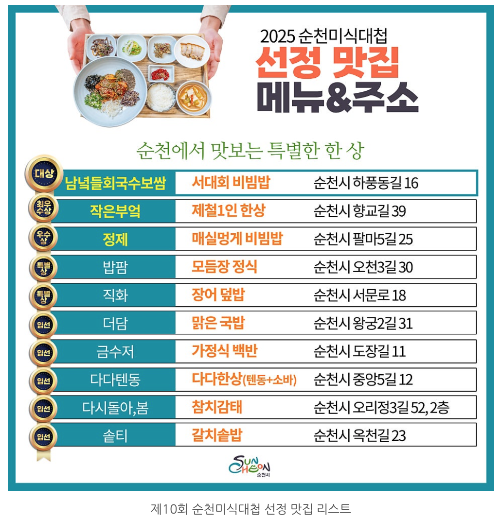 그래도 2025년 순천미식대상 수상집 정보 정도는 가지고 있어야 하지 않을까