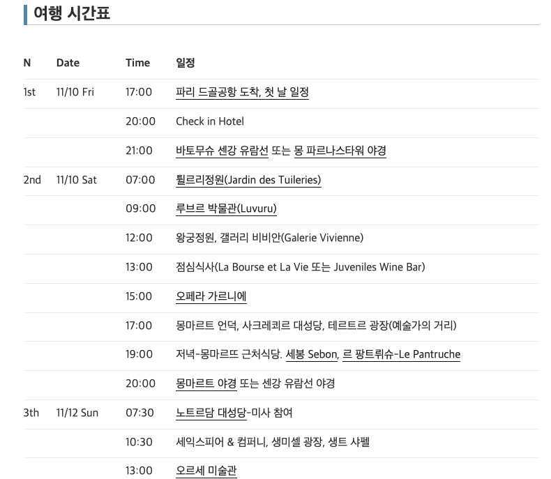 여행 시간표