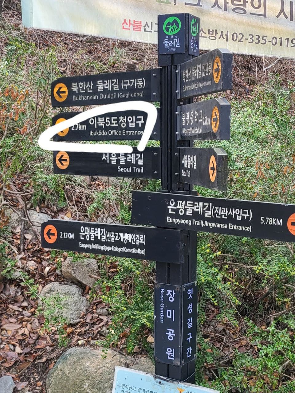 여기서 이북5도청이 아니라 향로봉쪽으로 이동할 것