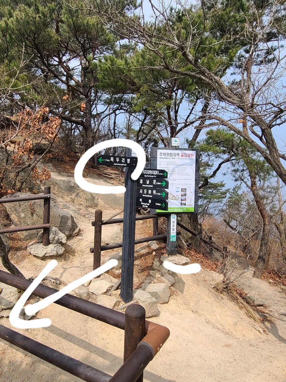 탕춘대성문앞에서 향로봉쪽으로 가야하니 중간 이정표를 보고 이동