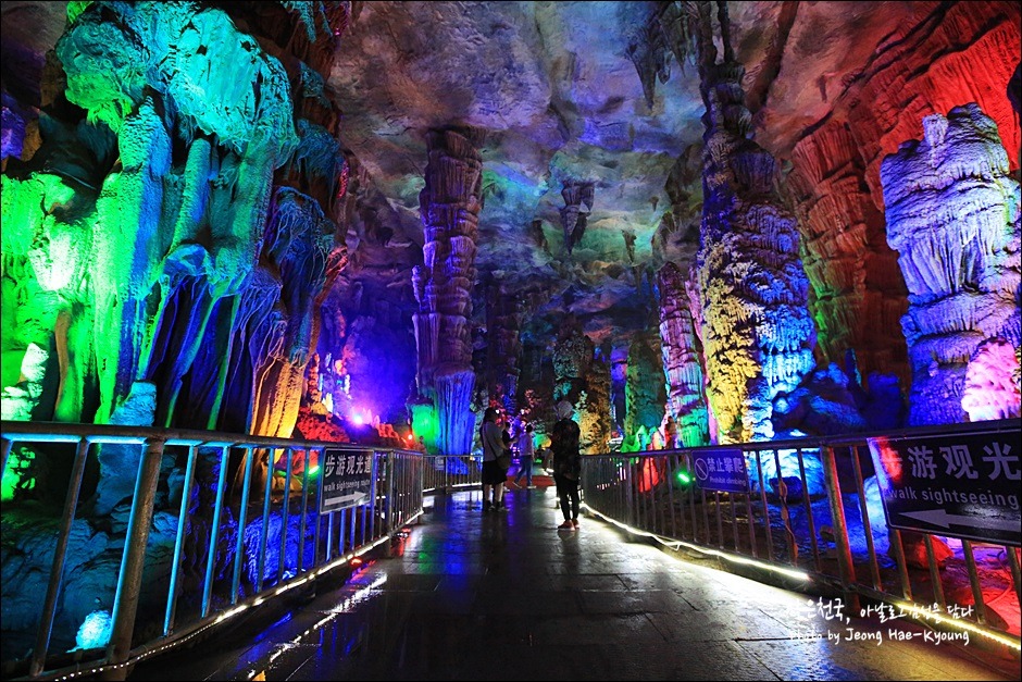 - 태산을 오르기 전에 먼저 찾은 곳은지하대열곡(地下大裂谷)산동성 림습시 습수현 용강산에 위치한 석회암 동굴로 중국 북부지역 최대의 석회암 동굴이다. 약 15억 위안을 투자해 2013년에 오픈한 종합관광풍경구로 한국 사람들에게는 아직 생소한 곳이었다. 중국의 유명한 석회암 동굴이 동굴 안에서 배를 타고 움직이는 것은 예사지만 이곳은 특이하게도 입구에서 약 3km 정도를 래프팅을 이용해 동굴 감상을 하는 한편, 다시 또 30여 분을 걸어서 총 6km의 거대한 종유석을 감상하게 되는 코스이다.