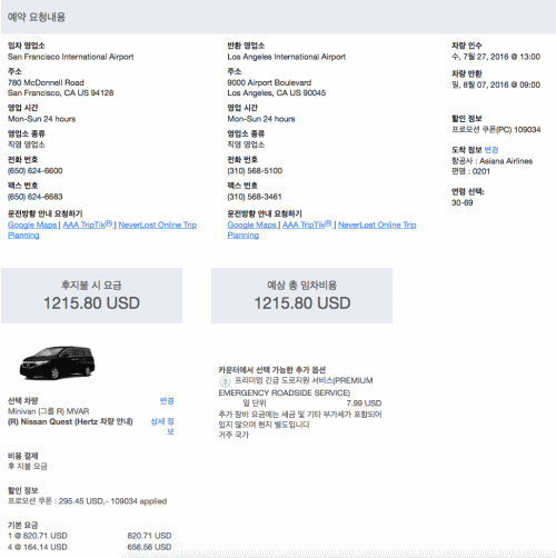 • Hertz 기준 이지만 렌트카 영수증 보는 법