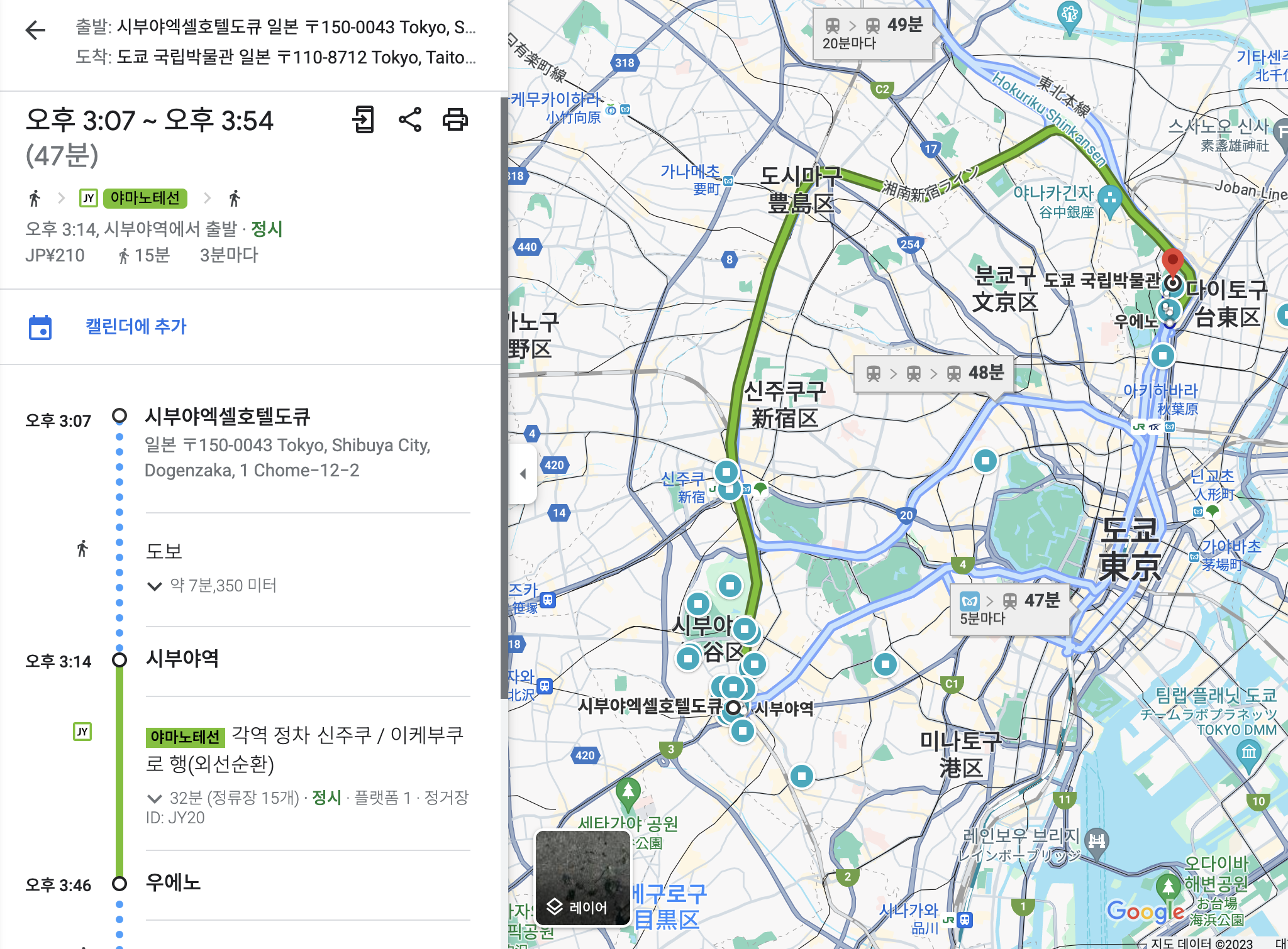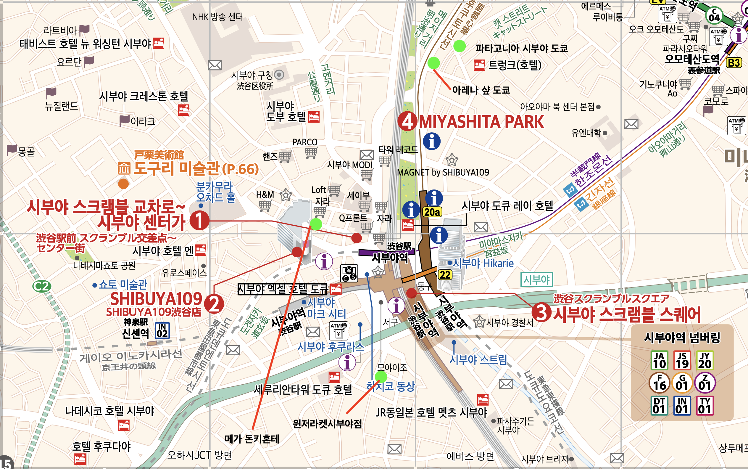 - 시부야 중심부 도보이동